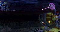 Al principio tiene forma de tanque pero se despliega de la base en forma humanoide pudiendo llevar diversas armas y usarlas gracias a sus brazos mecánicos. El principal ataque es su gran cañón largo de gran potencia.