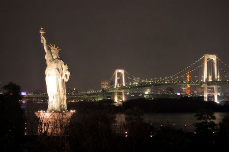 Aquí vemos la estatua de la libertad con el punte de san francisco y la torre Eiffel al final (torre de Tokio). Me pareció un sitio muy interesante, tenemos el parque de atracciones de Sega, muyyy surrealista, Edificio de la Fuji TV muy original y al lado mismo un centro comercial donde nos cruzamos por pura casualidad con una tienda especial del 20 aniversario de Dragon Ball, me gaste una buena pasta allí, había materiales todo relacionado con el mundo de la Shonen jump, el evento solo duro durante el mes de Agosto.