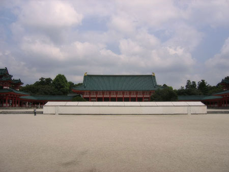 Fuimos al Heian Jingu (平安神宮 ), pasamos por la gran puerta y fuimos directos a templo, realmente solo le falta el estadio para ser el torneo de artes marciales de Dragon Ball xD.