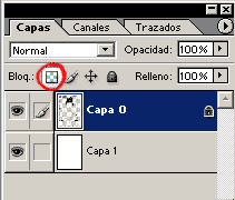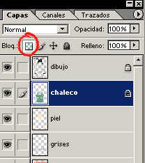 Podremos ver que mi capa tiene un candado a la derecha. Después de seguir todos estos pasos, coges la herramienta lápiz (con pincel tamaño grande) con un negro puro, empiezas a pasar el lápiz por todo el dibujo, sorpresa! el dibujo esta volviendo a su color original. Al bloquear la capa solo podemos pintar la zona no trasparente, como hemos borrado el fondo blanco, solo nos permite modificar el color de los bordes (las zonas negras), igual podríamos hace con otro color en vez de negro.
